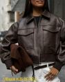 Стильная укороченная куртка из эко-кожи в насыщенном шоколадном оттенке.