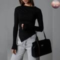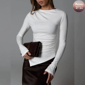 Нежный лонгслив с асимметричным низом шедевр современного минимализма игрой линий завораживает утонченной асимметрией и мягкостью тканьи, даря ощущение морского бриза и безмятежности утренней зари.