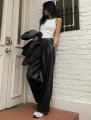 Женские классические брюки из высококачественной эко кожи за счт своей ширины.