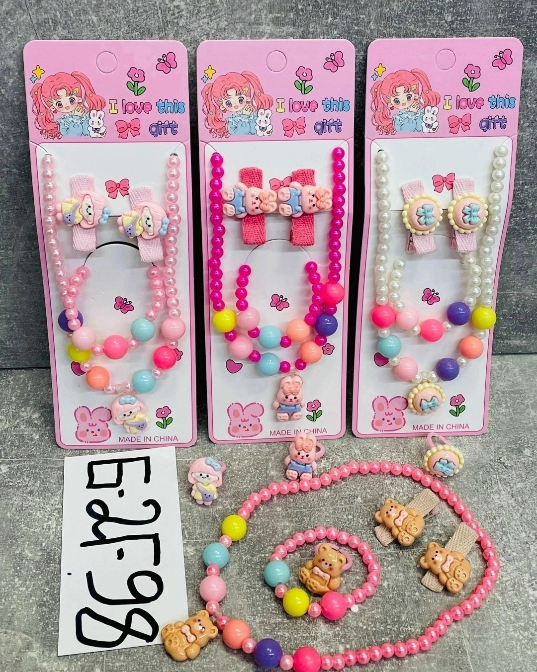 Набор бусы, браслет, колечко и 2-заколка.