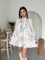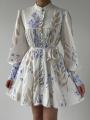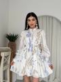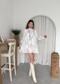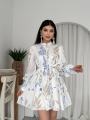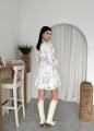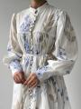 Это платье создано для тех, кто влюблен в эстетику загородных прогулок, цветущих садов и безупречного стиля Нежный цветочный принт в лавандово-голубых тонах на молочном фоне освежает образ и делает его по-настоящему летящим.