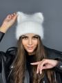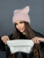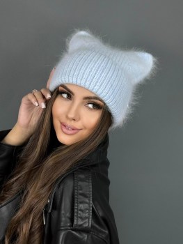 Шапка ангорка с ушами женския шапка.