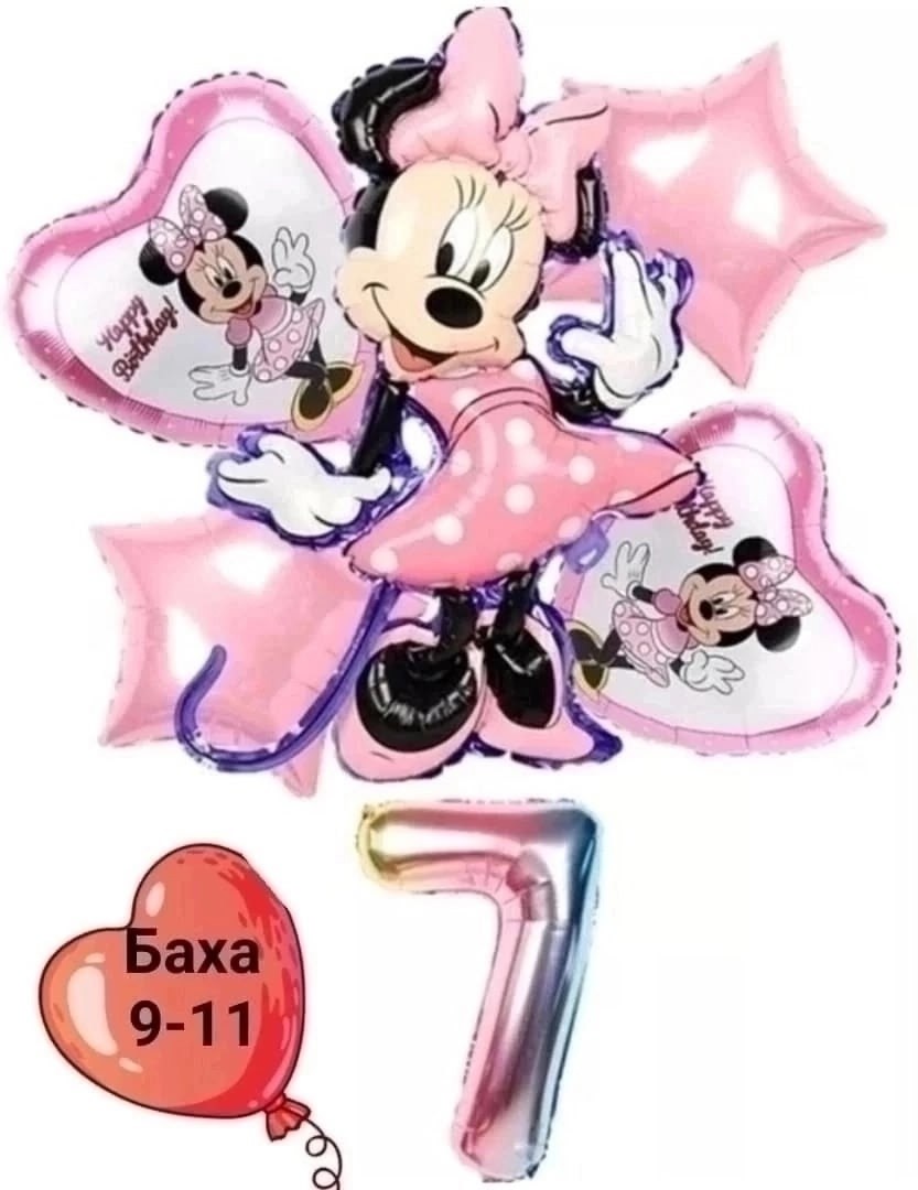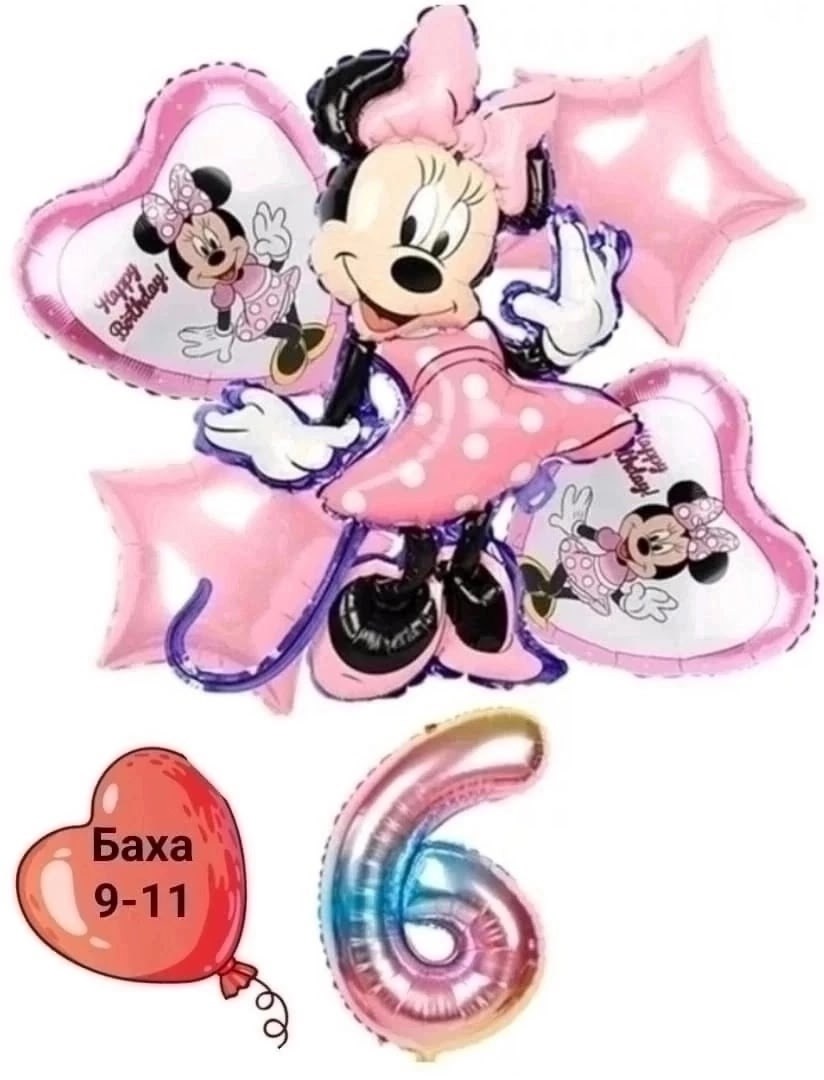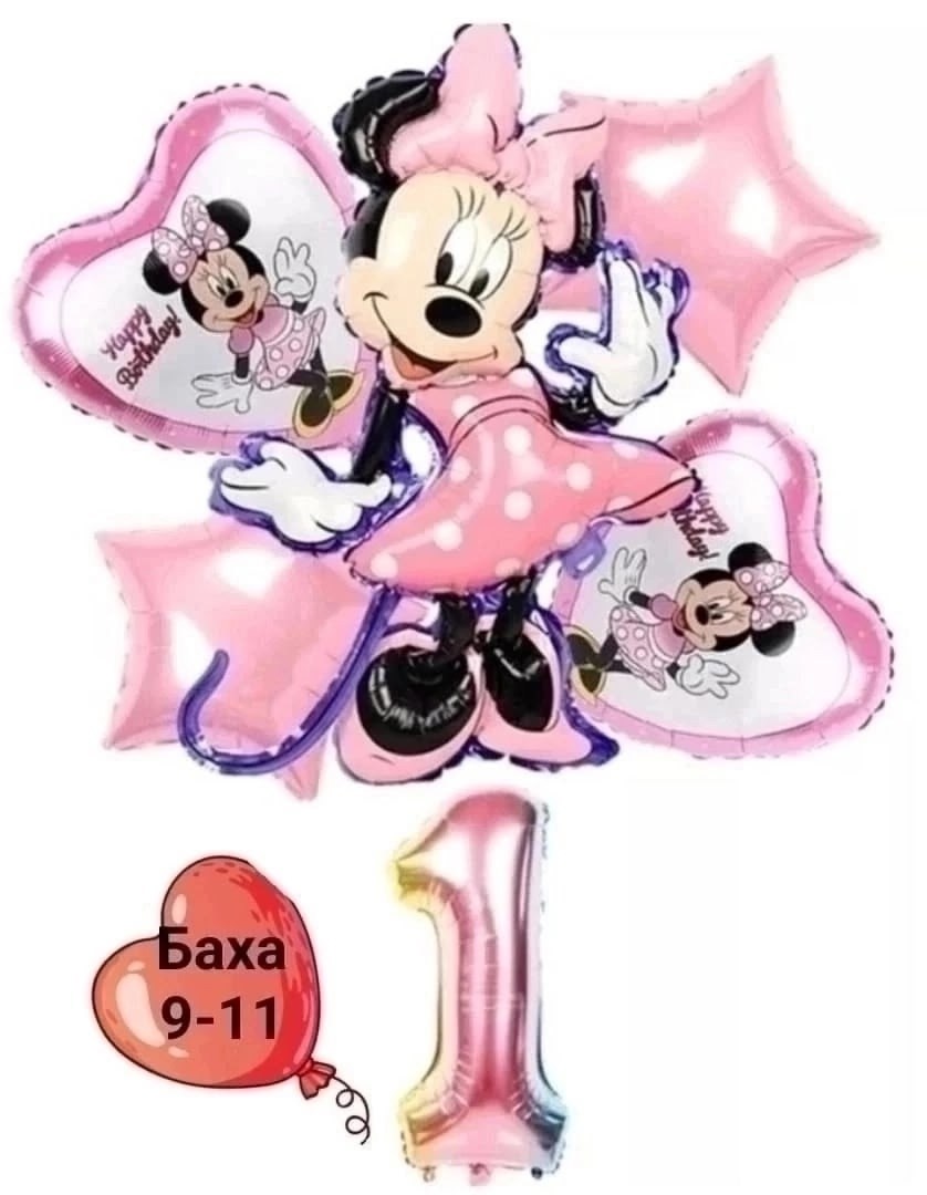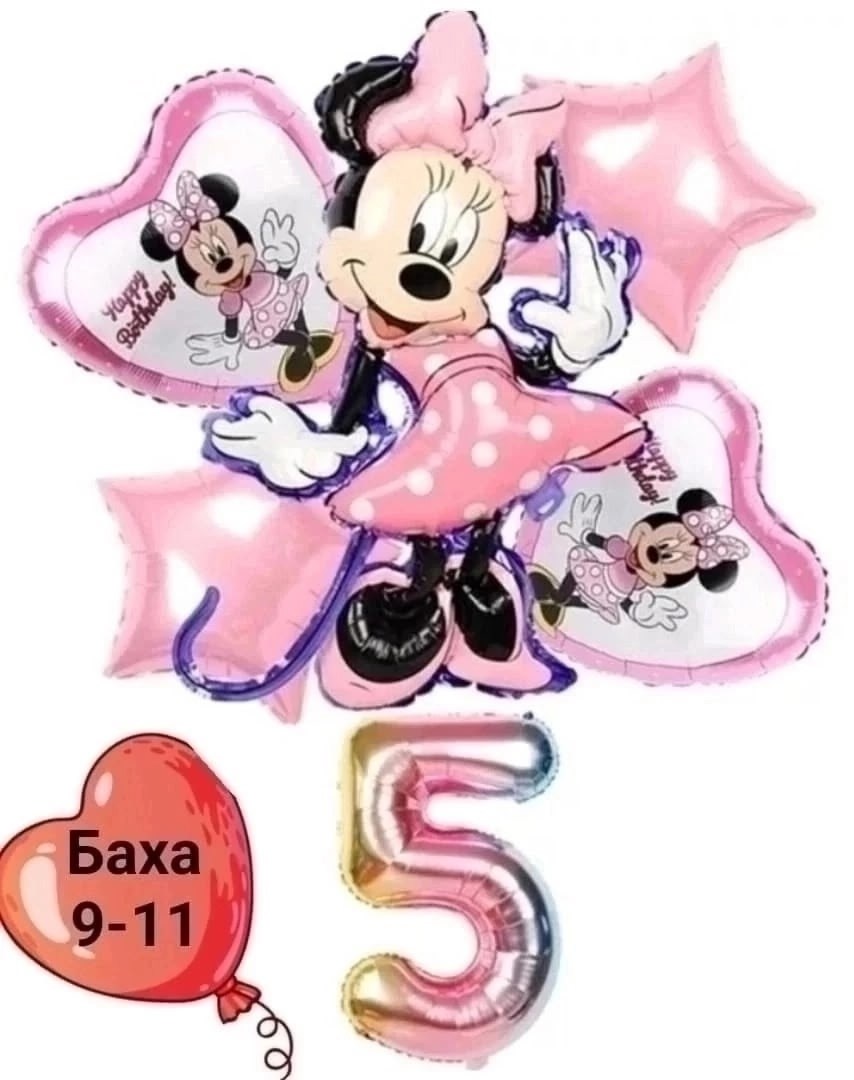 Воздушные шары минни маус5 шт 1 цифра.