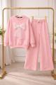 Розовый персик бант белый