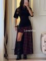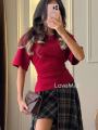 Кофта на завязке и двойная юбка в клетку.