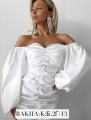 Это эффектное мини платье с декоративными сборками по всей длине и объeмными рукавами, гарантирует восторг у окружающих.