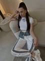 Стильные штаны c контрастными белыми полосками;.