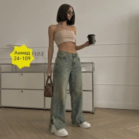 Уникальная комбинация голубого и серого создат эффект выцветшей старины, придавая джинсам неповторимый характер Свободный крой палаццо это воплощение свободы и комфорта.