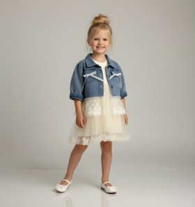 Представляем идеальное сочетание нежности и моды: воздушное платье с фатином и джинсовая куртка с кружевом !.