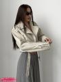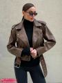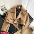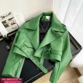 Тренд сезона - укороченная кожаная касуха приталеннего силуэта с карманами.