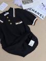 Футболка- поло chanel premium качества, тонкая вязка, приятная к телу ткань, отложной воротник с контрастными полосками по краю, планка на трех растягивающихся пуговицах и нагрудный карман,.