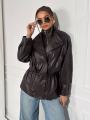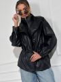 Стильные куртка-парка на кулиске из эко кожи.