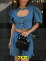 Эксклюзивный дизайн джинсовой двойке поражает: шортики и укорочeнная рубашка с открытой зоной груди!.