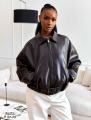Куртка бомбер выполнена из мягкой искусственной кожи премиального качества.