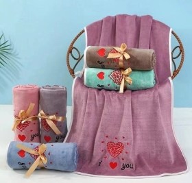 Быстросохнущие полотенца отличном качество с вышивкой сердечка.