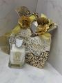 Упаковка: аромат представлен в изысканной подарочной коробке с золотистым цветочным декором и характерным восточным орнаментом Подобные наборы часто выпускаются к праздникам, таким как рамадан.