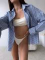 Рубашка женская в клетку с воланом - тренд сезона 2026 года Рубаха с рюшами оверсайз - находка для модниц.