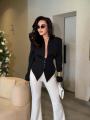 Стильный приталенный пиджак с акцентной талией и фигурным кроем Эффектно садится по фигуре и делает образ дорогим и собранным.