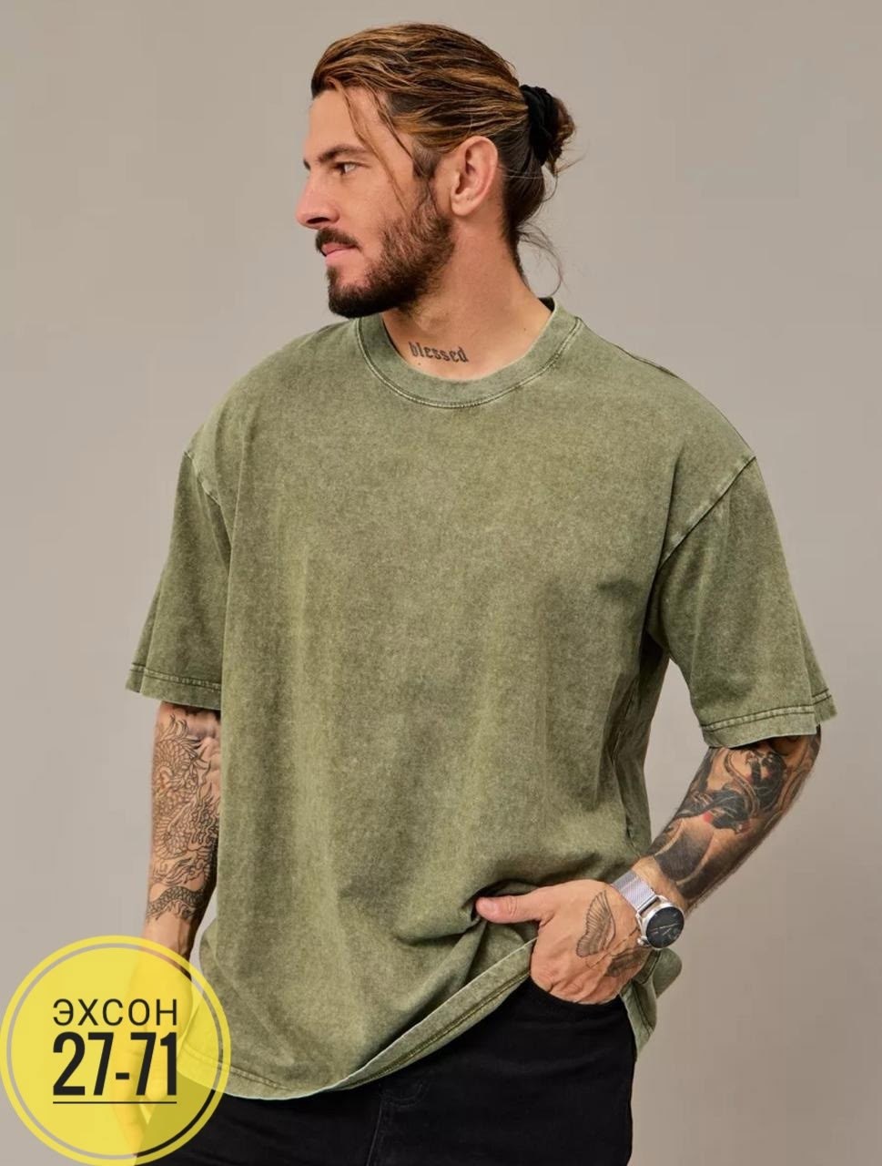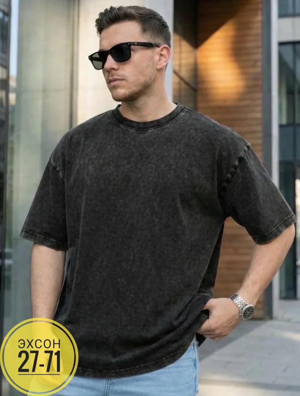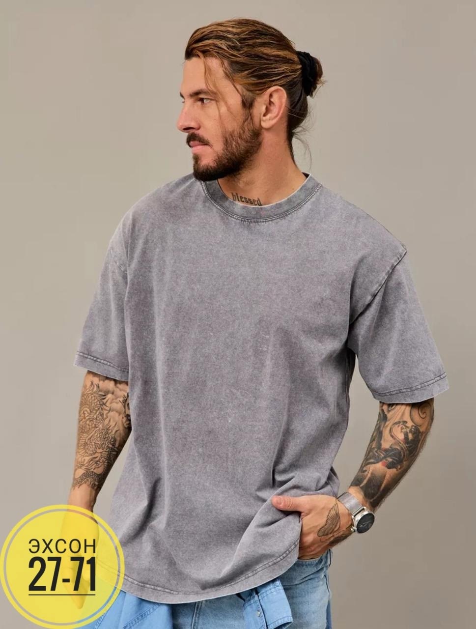 Вареная футболка потертая в джинсовом стиле.