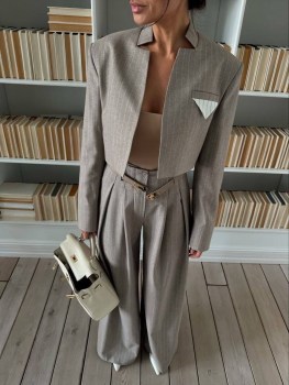 Костюм брючный женский с укороченным пиджаком.