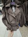 Представляем вашему вниманию стильную и универсальную коричневую замшевую куртку-косуху с поясом, которая станет отличным дополнением шикарные ветровкиа Эта куртка идеально подходит для создания модных образов и легко комбинируется с различными стилями.