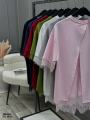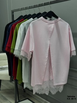 Футболка с кружевами - это стильное рещение для создания как повседневных, так и праздничных образов Свободный покрой обеспечивает комфорт а кружева на детали оформления придают модели женственность и изысканность.