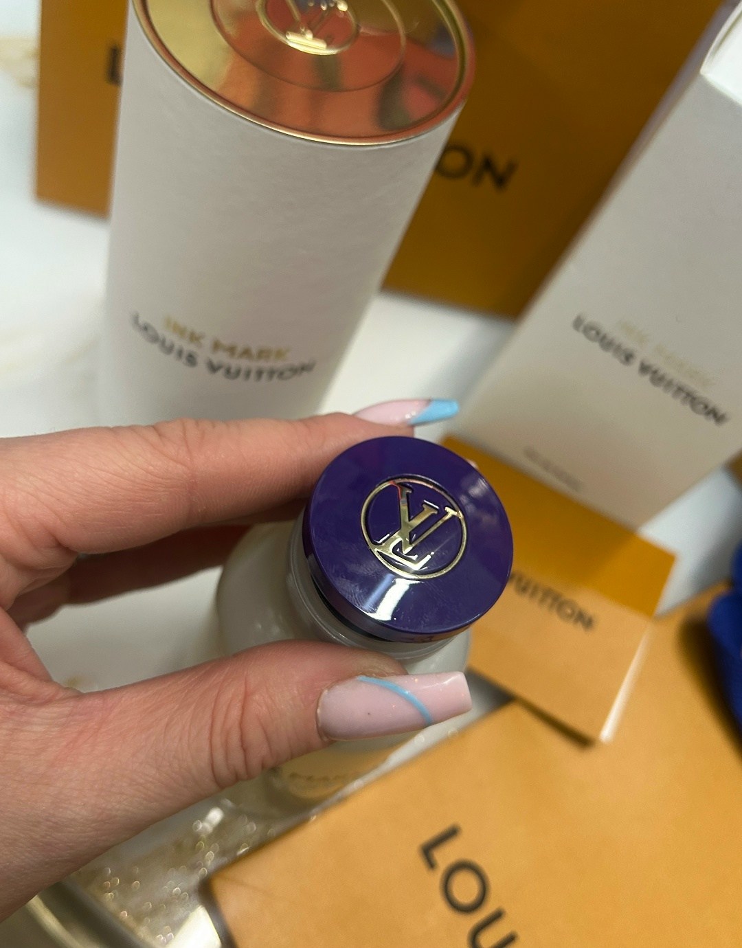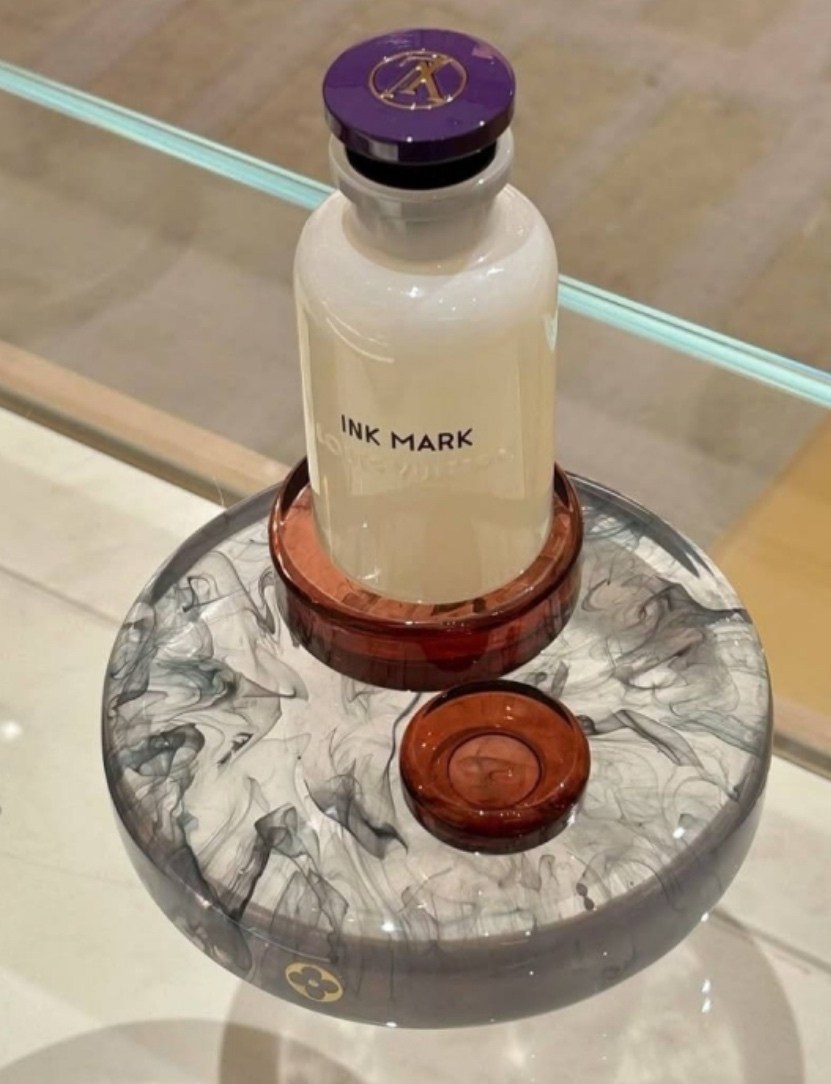 Ink mark древесно-цветочный аромат, как след, оставленный навсегда Это ароматическая каллиграфия Как чрнильный след пера на плотной бумаге, он точен, выразителен и неизгладим Парфюм выпущен в 2025 году домом louis vuitton.