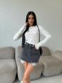 Премиум, zp Топовая фабрика Крутая джинсовая юбка от mu mu.