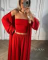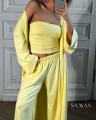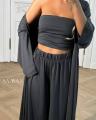 Эффектная тройка с топом бандо, брюками и легкой накидкой Идеальна для стильных летних образов и отдыха.