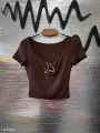 Укороченная футболка (немного тянется), с эффектной металлической деталью на груди Длина 44см Арт 4704.