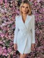 Платье пиджак популярный и предмет гардероба модницы Представляем вашему вниманию платье жакет двубортное на запах,с поясом,ремень с люверсами, категориях длины мини приталенного фасона можно надеть как в офис,так и на праздник,день.