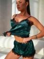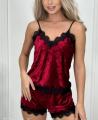 Женская пижама с шортами и майкой - идеальный комплект для дома, в котором вы будете чувствовать себя удобно и стильно Топ на бретельках и шорты свободного силуэта из бархата выполнена из приятной к телу велюровой тканьи.