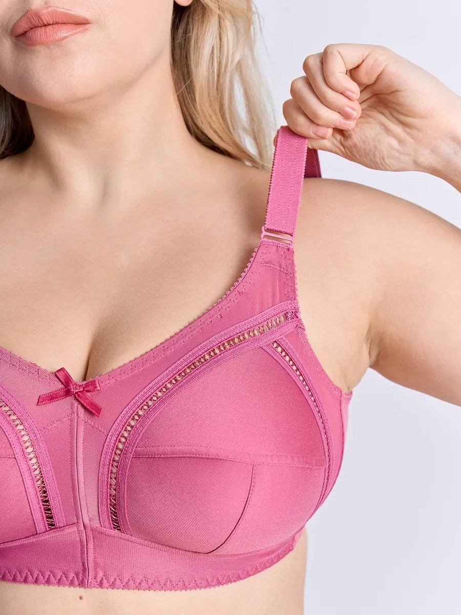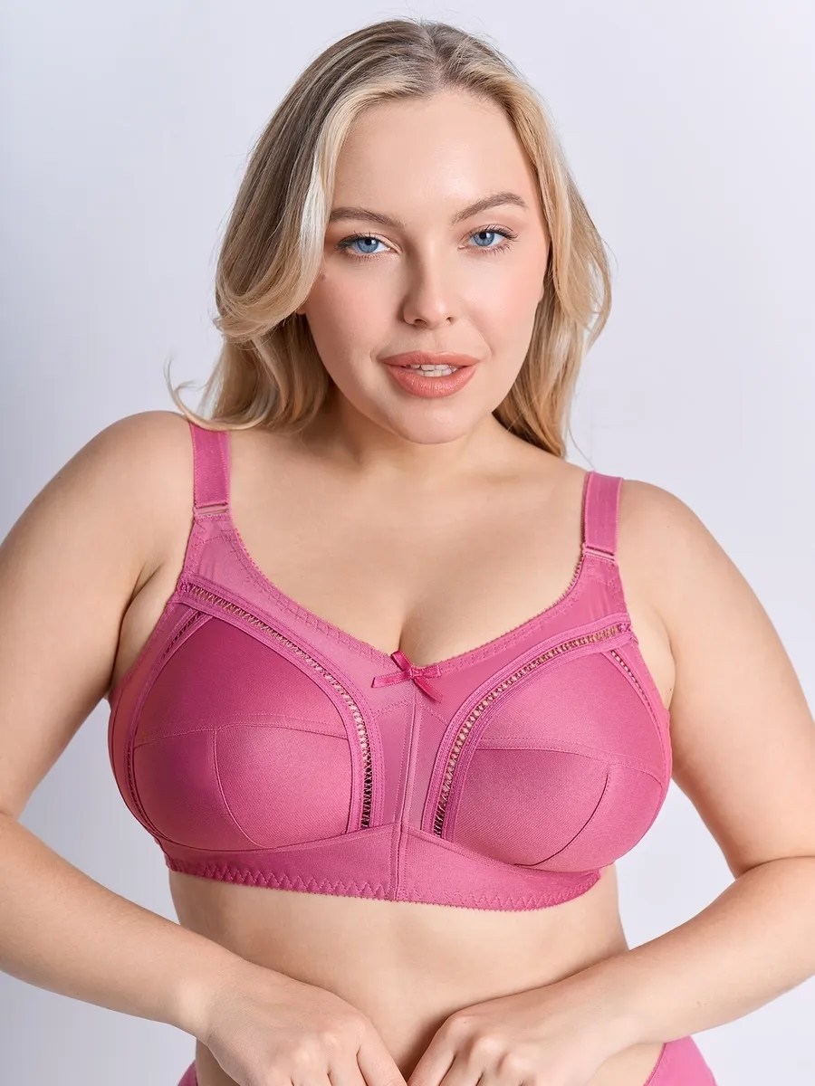 Закрытый бюстгальтер без косточек для большой груди Закрытая чашки, t-образный шов, широкий стан и широкие бретели комфортно поддерживают большую грудь Внутренняя деталь чашек на хлопковом подкладе Классический закрытый бюстгальтер с мягкими чашками без каркасов на каждый день.