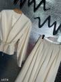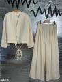 Костюм двойка: укороченный пиджак с пояском брюки палаццо на резинке талия, снизу кулиска, можно утягивать и будут брюки алладины Длина по внешнему шагу 110см / по внутреннему 77см Пиджак длина от плеча 55см Арт 4678.