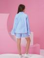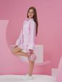 В комплект входит рубашка свободного кроя с кружевными манжетами.
