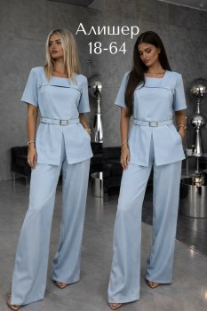 Шикарный вечерний костюм двойка в нежно голубом цвете.