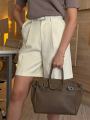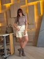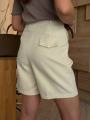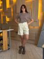 Шорты-бермуды выполнены из тканьи средней плотности, имеют классический дизайн с поясом и застежкой на пряжку.