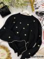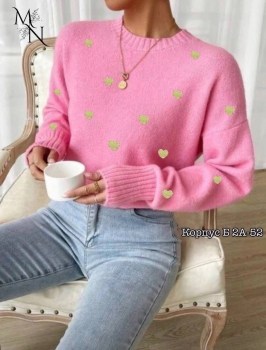 Свитер с сердечками будет сидеть отлично на любой фигуре, создавая стильный и расслабленный образ Длинные рукава фонарик и округлый вырез добавляют ему женственности и изысканности!.