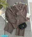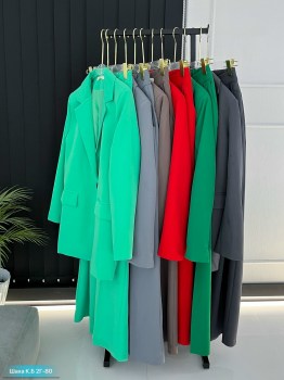 Женский брючный костюм с однобортным пиджаком выполнен из плотной костюмной тканьи Классическая двойка включает брюки прямого кроя и элегантный пиджак на подкладке.