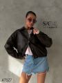 Модель демонстрирует куртку, маркировка s(42).