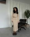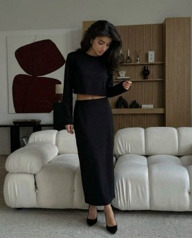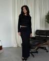 Стильный костюм: кроп кофта и юбка с разрезом.