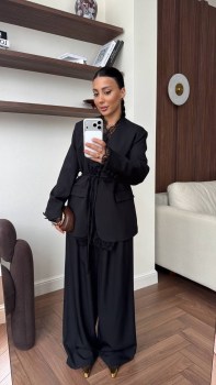 Идеальная посадка, акцент на талии и утончнные кружевные детали создают образ с ноткой роскоши и уверенности.