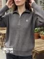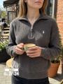 Вязаное женское поло с длинным рукавом и вышивкой.