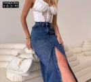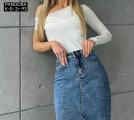 Джинсовая юбка карандаш с отрезом