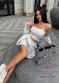 Классные костюмчики тройки m1u m1u с крутой посадкой в идеальном исполнении; кофточка с капюшоном юбка-шорты топ;.