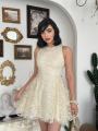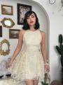 Это мини-платье создано для тех, кто ценит эстетику old money и cottagecore Объемные цветочные аппликации и деликатное кружево создают неповторимый 3d-эффект, делая образ воздушным и дорогим.