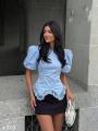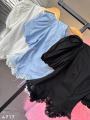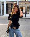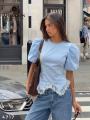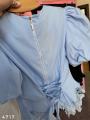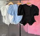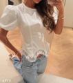 Блуза с объемными плечиками фонариками и шнуровкой на спинке Арт 4717 Длина 52см с кружевом.