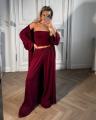 Эффектная тройка с топом-бандо, широкими брюками и легкой накидкой Идеальный вариант для стильных летних образов, отдыха и выхода.