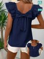 Женская винтажная блузка, свободный пуловер без рукавов с зади на бантиком, лето 2025 Г.