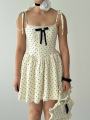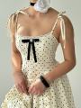 Классический принт горошек возвращается в самом романтичном прочтении Эти платья созданы для тех, кто любит детали: изящные банты с кристаллами, тонкие завязки на плечах и нежное кружево по нижнему краю.